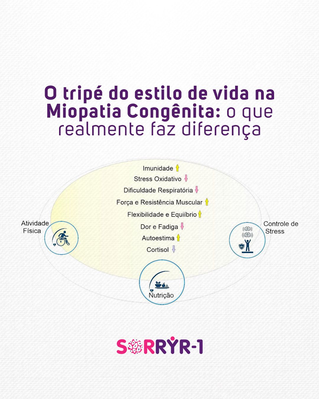 O tratamento da miopatia congênita deve ter uma abordagem multidisciplinar e individualizada, focada na reabilitação e no suporte contínuo para otimizar a funcionalidade e o bem-estar. Esse estilo de vida a que me refiro, seria sustentado por um tripé de condutas, sintetizado no Controle de Stress, Nutrição, e Atividade Física.